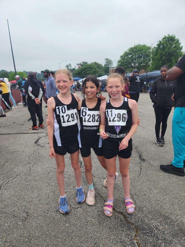 Girls 11 years old – Maggie Shaner shattered her own age group record in the 800 meters running 2:46.85 to finish in 8th and advance to the Regional meet. Maggie also ran on the 3rd place 4×400 relay.